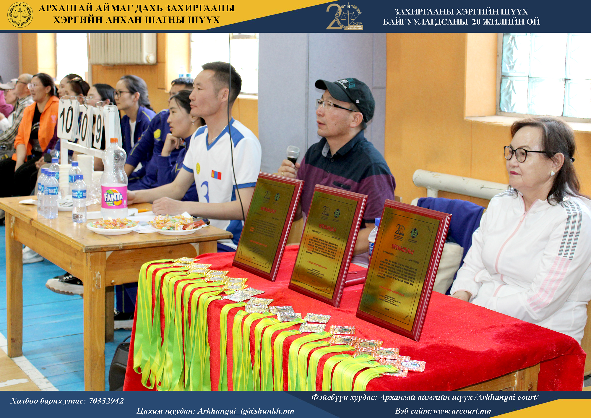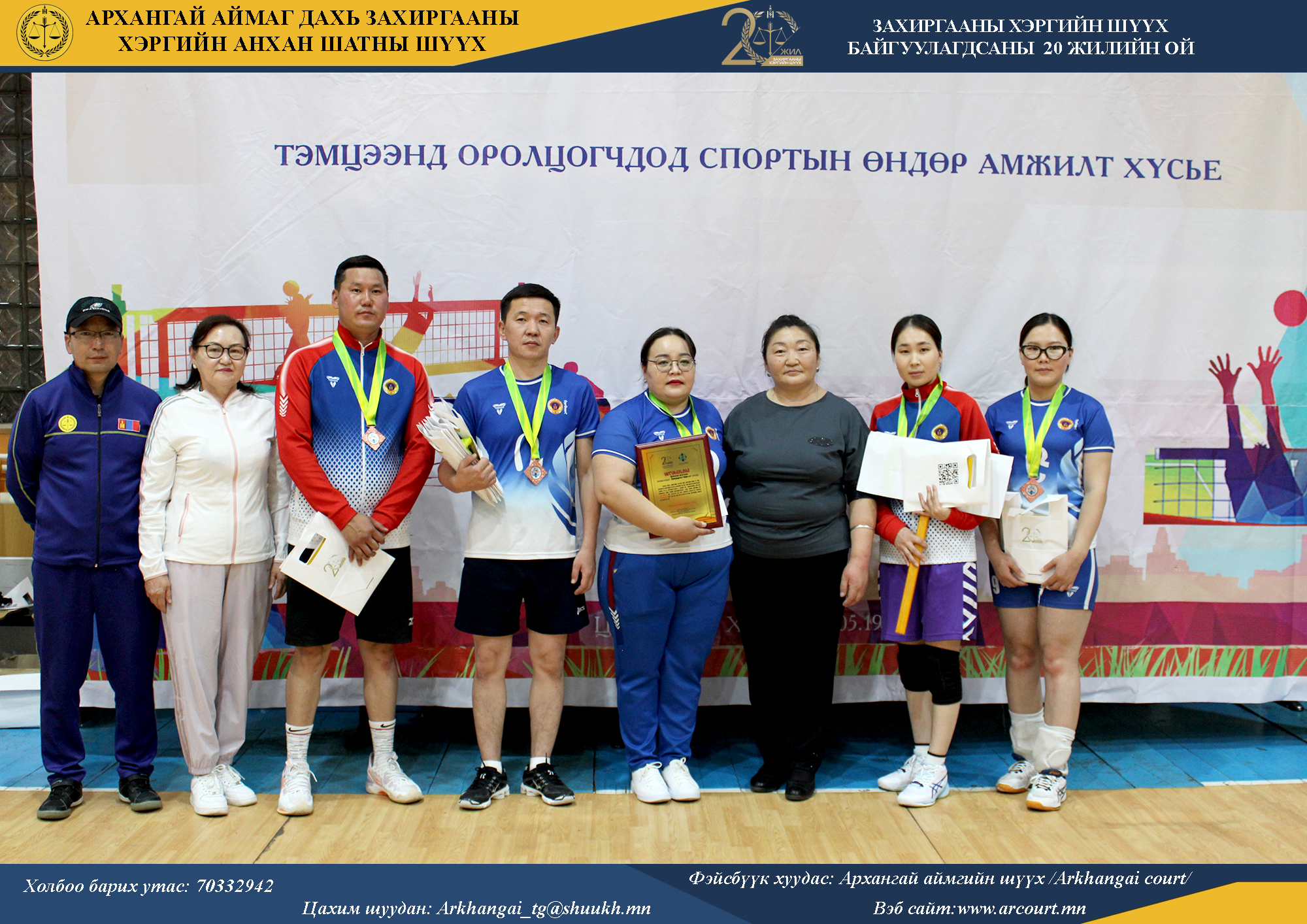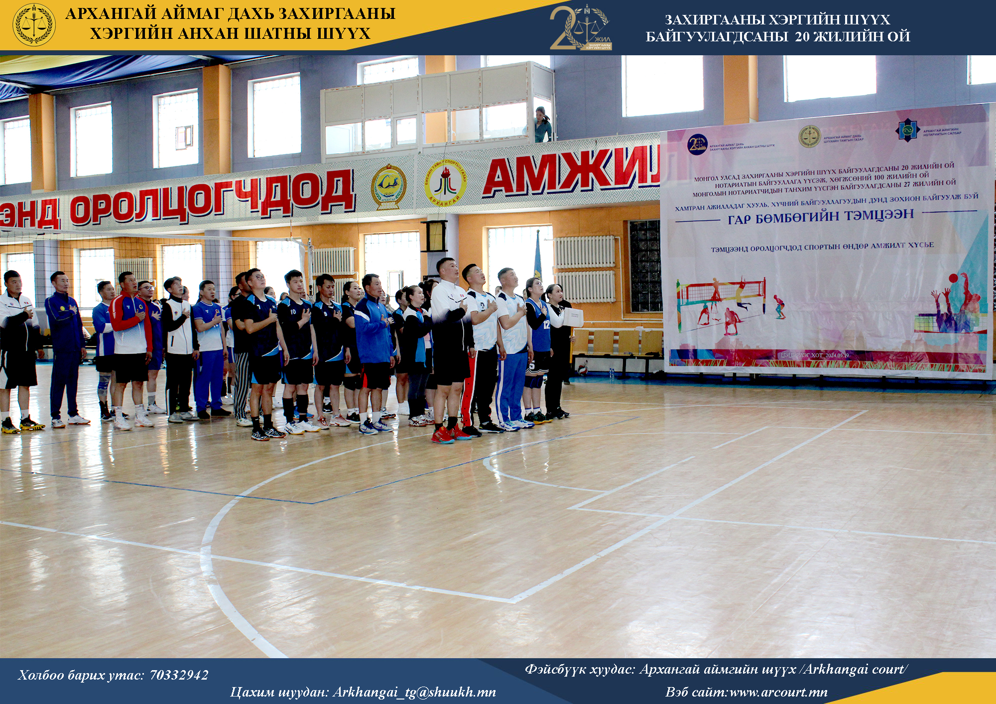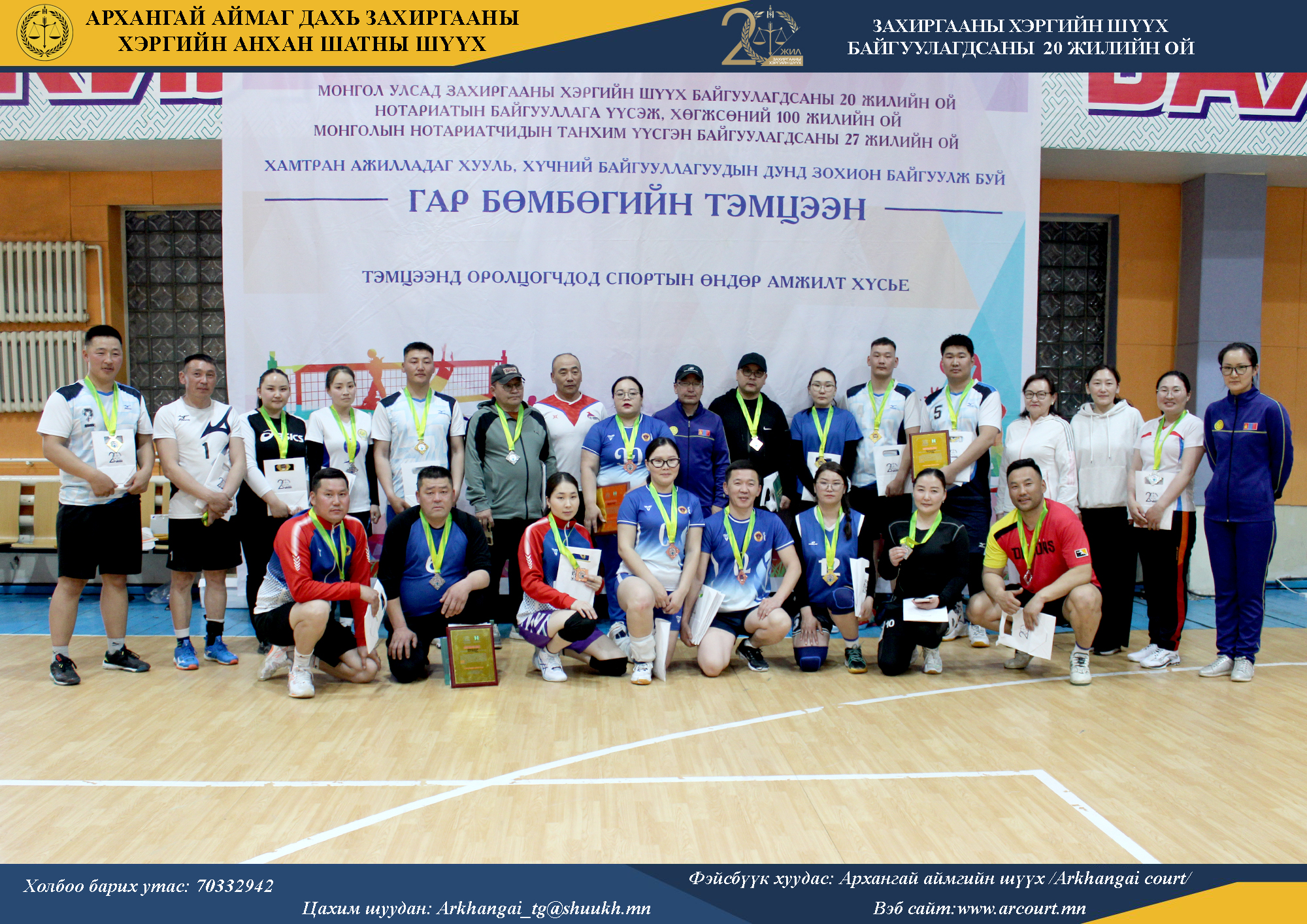 2025-12-10 | 652Монгол Улсад Захиргааны хэргийн шүүх байгуулагдсаны 20 жил, нотариатын байгууллага үүсэж, хөгжсөний 100 жил, Монголын нотариатчидын танхим үүсгэн байгуулагдсаны 27 жилийн ойг тус тус тохиолдуулан Архангай аймаг дахь Захиргааны хэргийн анхан шатны шүүх, аймгийн Нотариатын салбараас хамтран ажилладаг хууль, хүчний байгууллагуудынхаа дунд зохион “гар бөмбөг”-ийн тэмцээнийг амжилттай зохион байгууллаа.