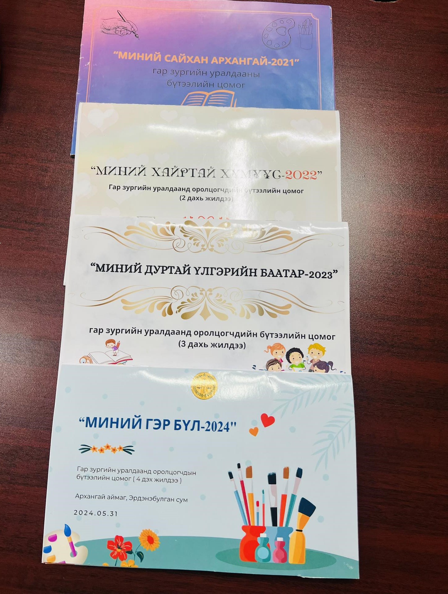 Энэ жилийн хувьд "Миний гэр бүл”- 2024 гар зургийн уралдаан зарлаж, уралдаанд ирүүлсэн хүүхдүүдийн бүтээлийг бага, дунд, ахлах насны ангилалаар шалгаруулж, шалгарсан хүүхдүүдийн шагналыг гардуулан өгч баяр хүргэв. Хүүхдүүдийн зурсан бүтээлээр нь зургийн цомог хийж хүүхдүүддээ дурсгал болгон хадгалуулав.