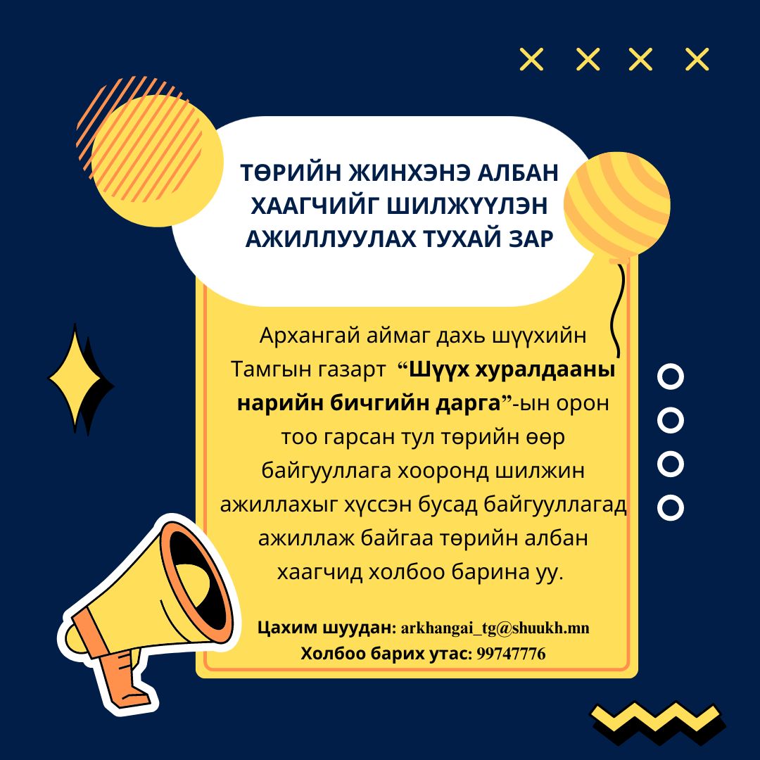 Төрийн жинхэнэ албан хаагчийг шилжүүлэн ажиллуулах тухай зар