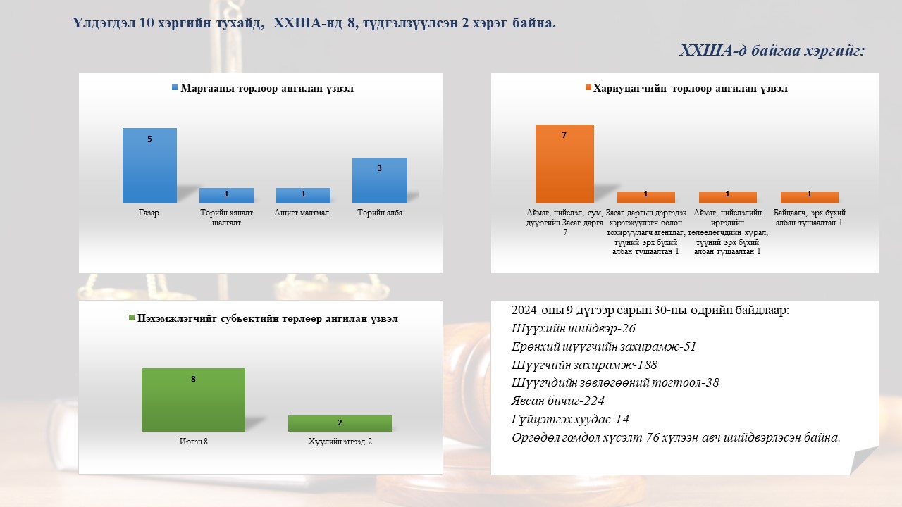 Архангай аймаг дахь Захиргааны хэргийн анхан шатны шүүхийн 2024 оны 9 дүгээр сарын шүүн таслах ажиллгааны мэдээ