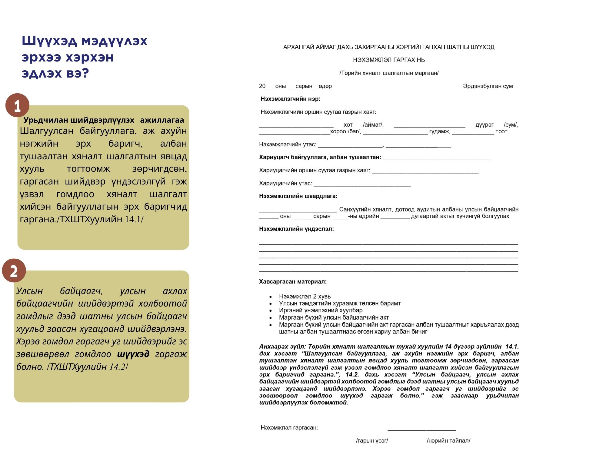 Тусгайлсан журмаар нэхэмжлэл гаргахад дагалдах маягтууд