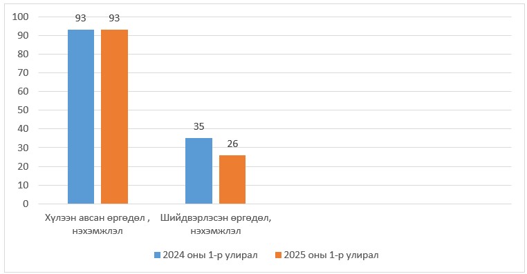 Өмнөх оны мөн үетэй харьцуулбал: Хүлээн авсан өргөдөл, нэхэмжлэлийн тоо мөн оны хэмжээнд;