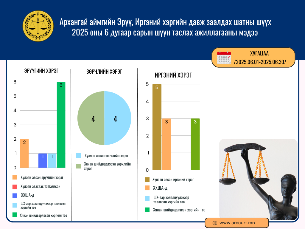 Архангай аймгийн Эрүү, Иргэний хэргийн давж заалдах шатны шүүхийн 2025 оны 6 дугаар сарын шүүн таслах ажиллагааны мэдээ