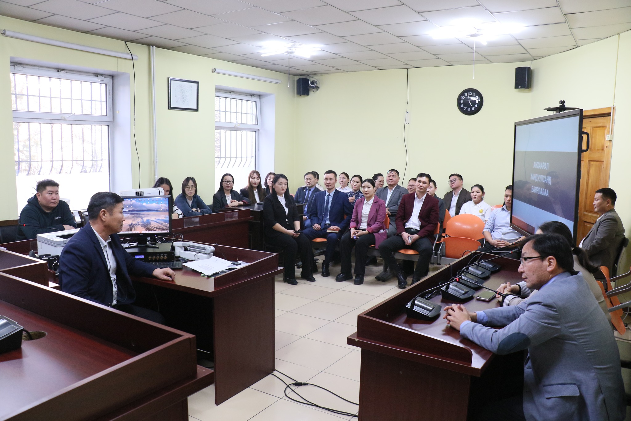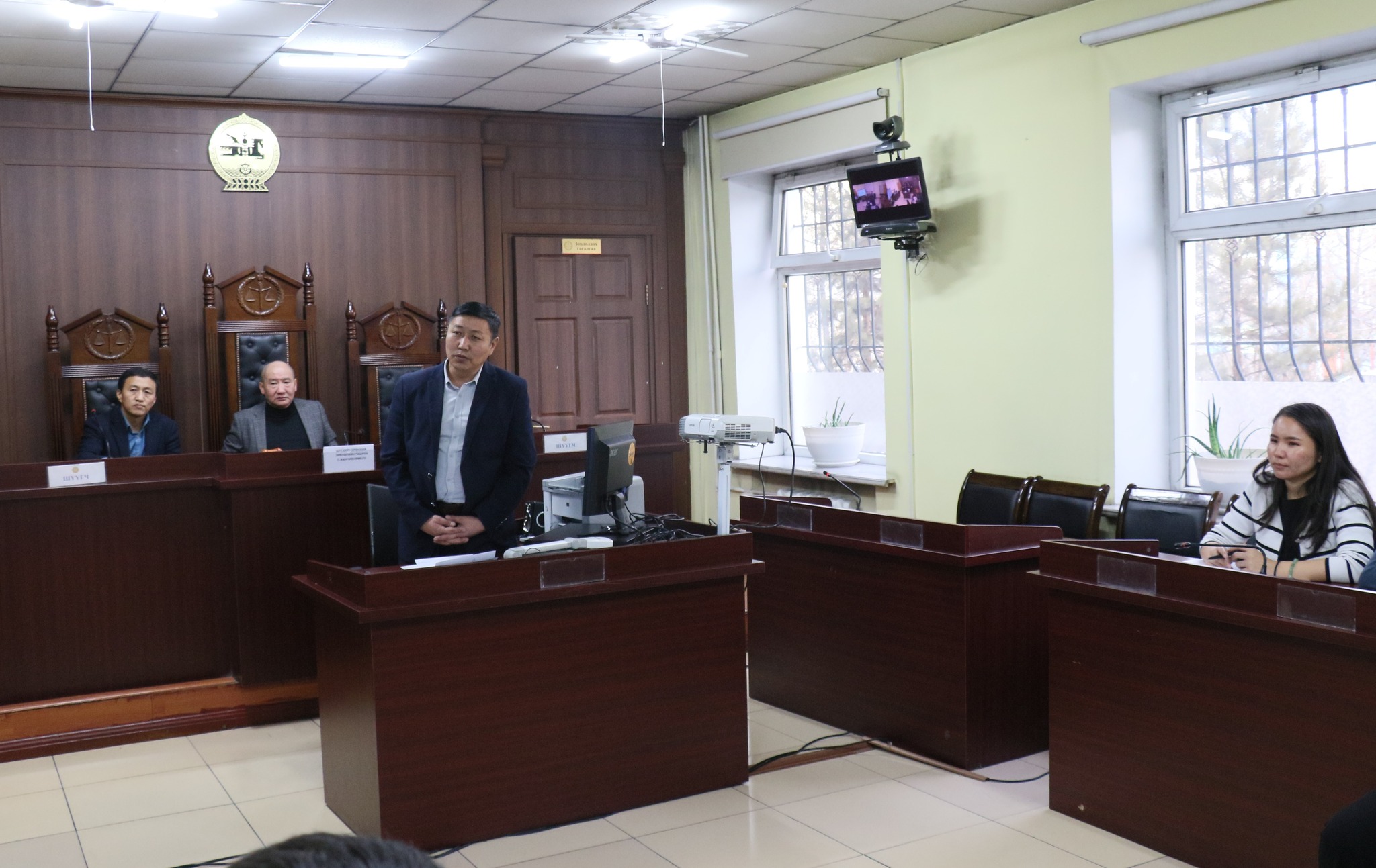 Ажлын хэсэг Шүүх байгуулах тухай хууль, Монгол Улсын шүүхийн тухай хуульд орсон нэмэлт, өөрчлөлт, “Монгол Улсын шүүх эрх мэдлийн хөгжлийн бодлого” болон Шүүхийн ерөнхий зөвлөлөөс хэрэгжүүлж буй бодлого, үйл ажиллагааг шүүгч, шүүхийн захиргааны ажилтнуудад танилцуулж, санал солилцох уулзалтыг хийлээ. Мөн шүүхийн байр, шүүх хуралдааны танхим, шүүгч, шүүхийн захиргааны ажилтнуудын өрөө тасалгаа, ажиллах орчин нөхцөлтэй танилцсан юм.