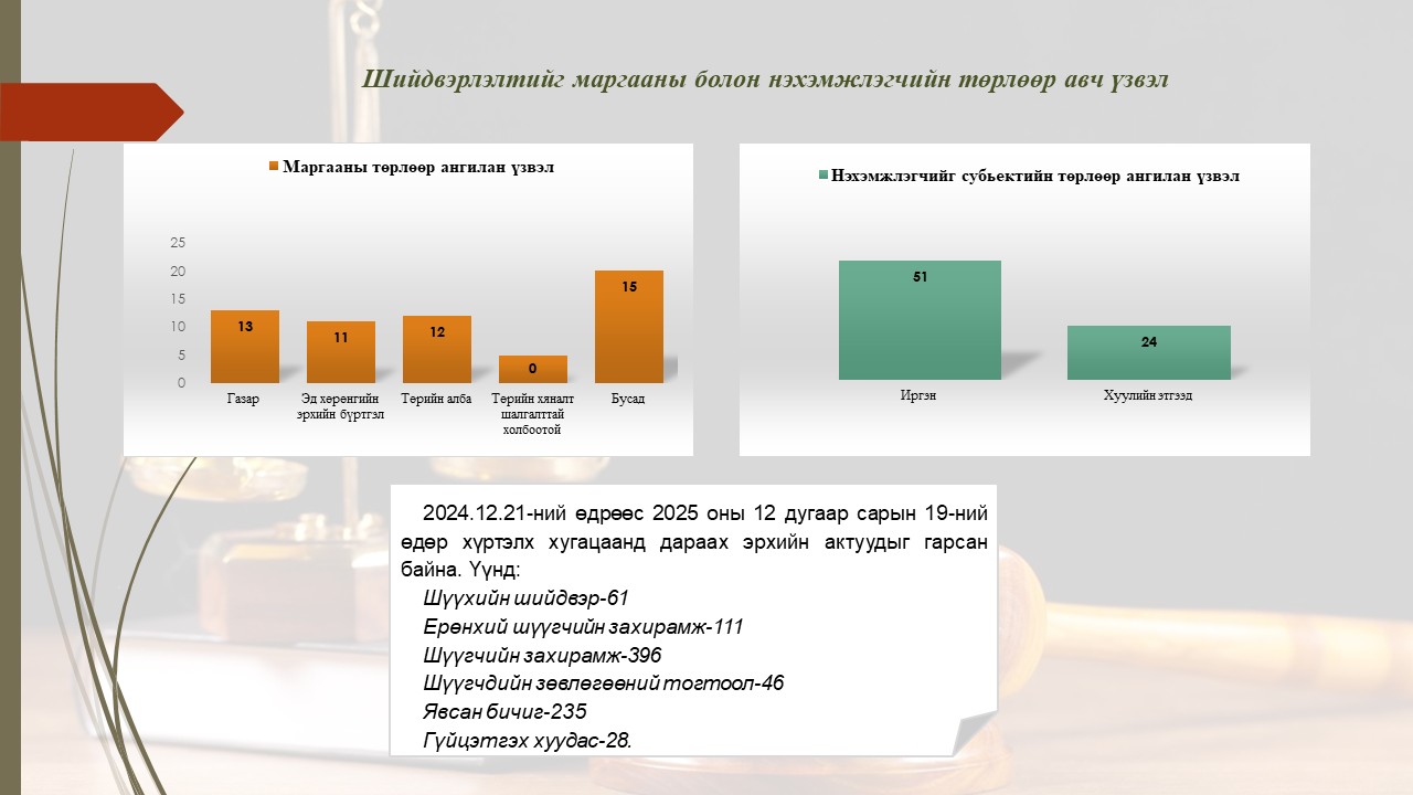 Архангай аймаг дахь Захиргааны хэргийн анхан шатны шүүхийн 2025 оны бүтэн жилийн шүүн таслах ажиллагааны мэдээ