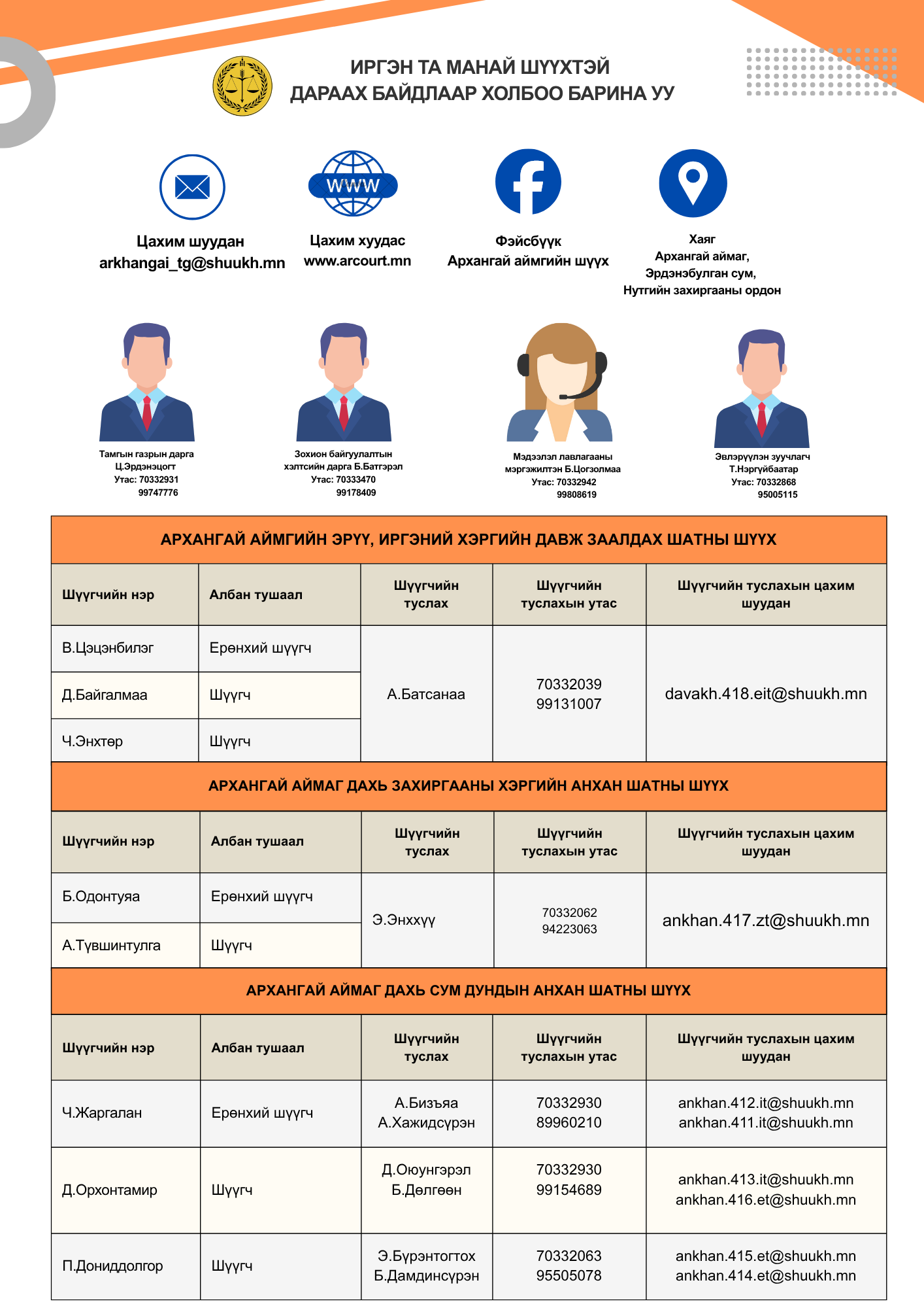 Цахим шуудангийн хаяг: arkhangai_tg@shuukh.mn