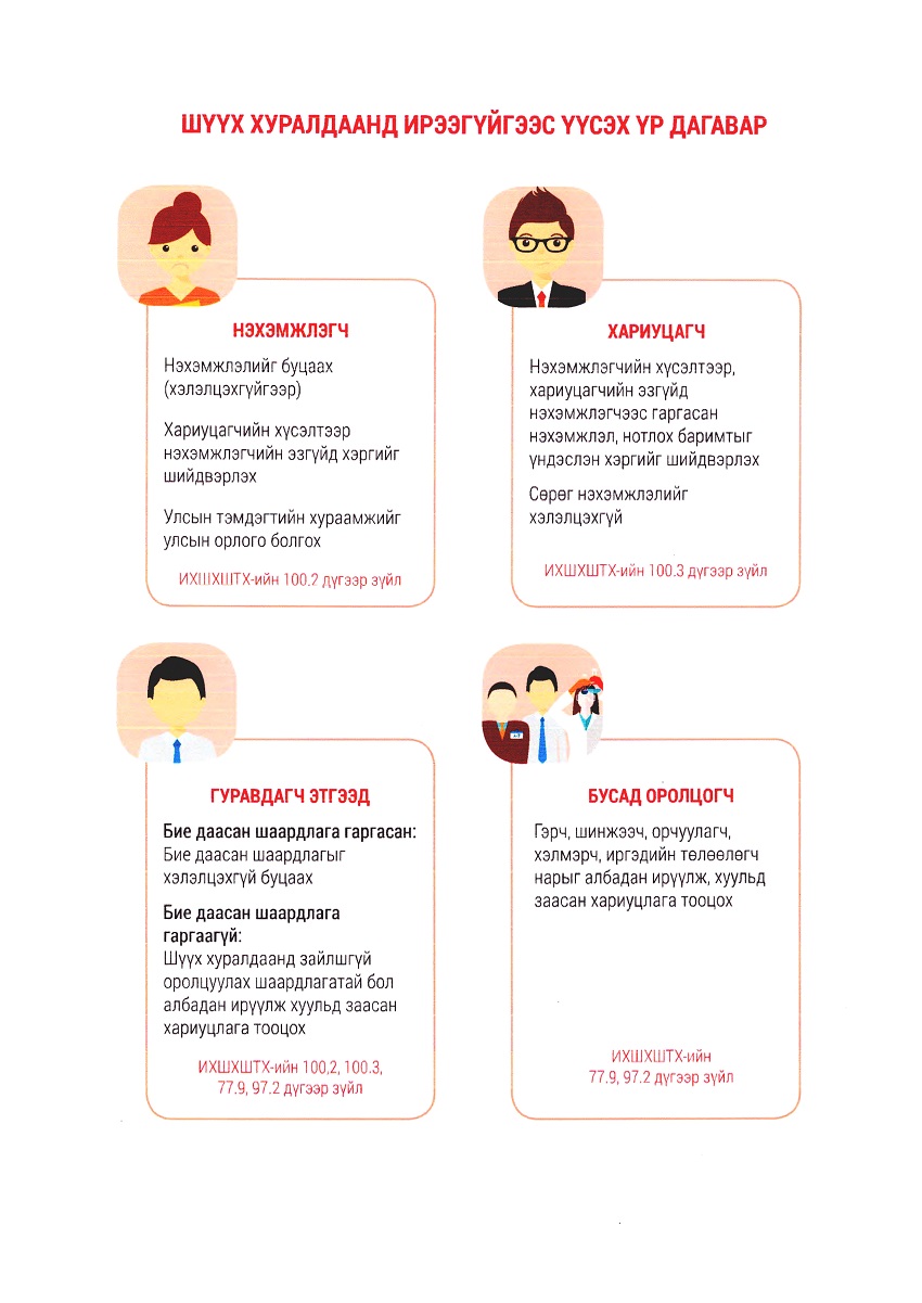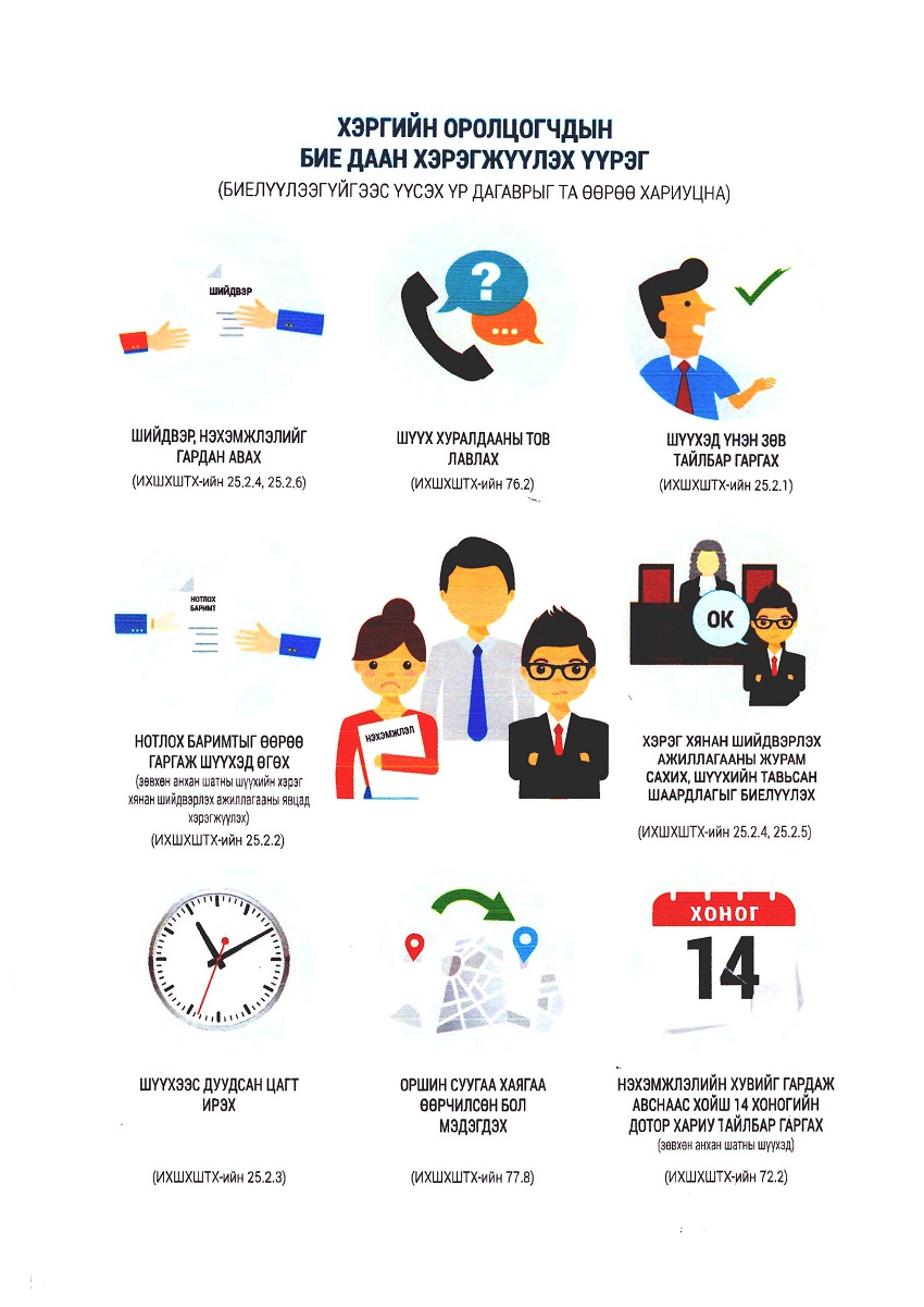 • Шүүх таны нэхэмжлэл, хүсэлтийг хүлээн аваад хийгдэх ажиллагаанууд