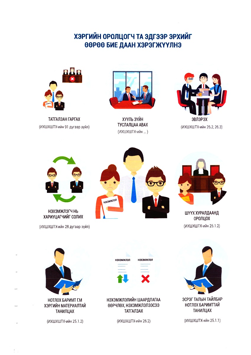 • Эвлэрүүлэн зуучлах ажиллагаанд оролцогчдын эрх, үүрэг